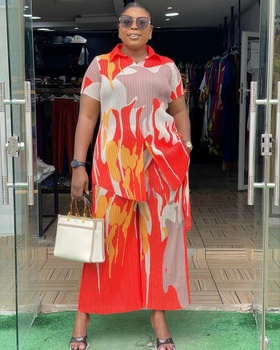 Falda plisada de manga murciélago con estampado Floral y cuello en V al por mayor, conjunto de vestido de 2 piezas informal elegante Miyaki de talla grande para mujer